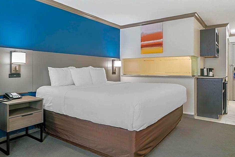 Cable TV and a coffee maker are included in this room. There is an iron, ironing board, and a hairdryer as well.